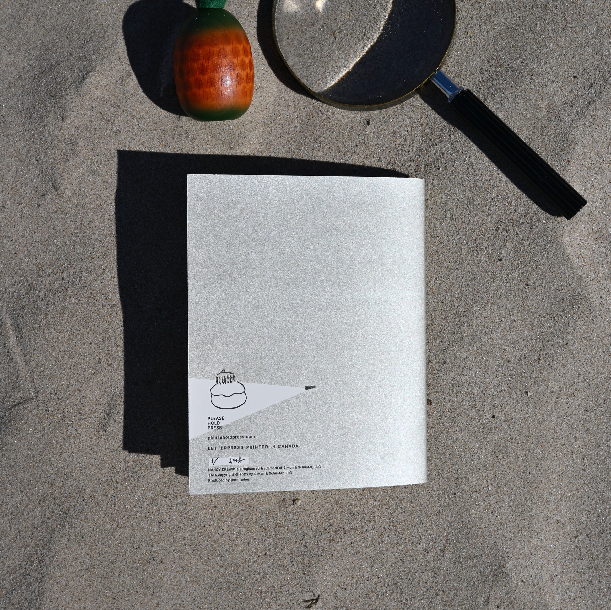 Our first official notebook collaboration with Nancy Drew, the iconic girl sleuth - letterpress-printed on a 1950 Vandercook 4T printing press. A compact, soft-cover volume for insights, diagrams, and amateur investigations (eg. how did bubble gum end up on the sole of my slipper?). It fits neatly in a purse, a briefcase, or on the Cognac leather passenger seat of your convertible.